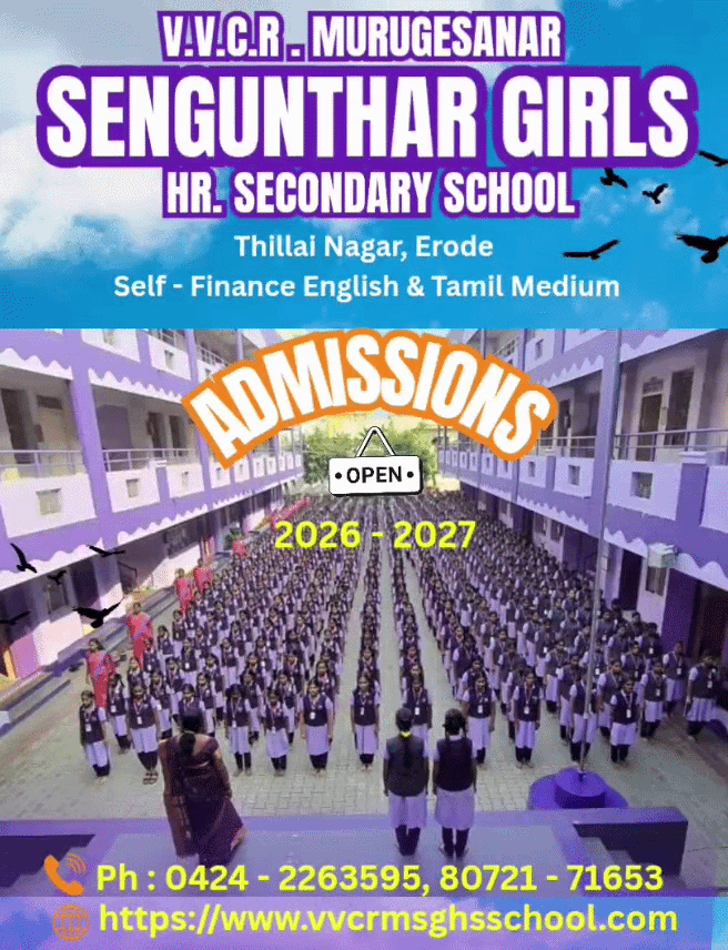 V.V.C.R. Murugesanar Sengunthar Girls Higher Secondary School, Erode belongs to the largest network of educational institution run by The Sengunthar Education Board which is the full of Vigour and Vivacity.